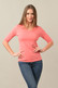 Very flattering shirt. Fits next to body but not too tight. Feminine look. good fabric weight and soft. The cross neck doesn't gap or sag and isn't too low cut. I will purchase in other colors.